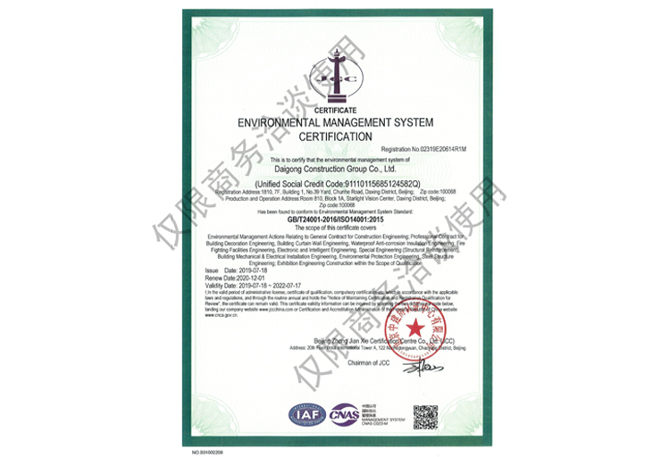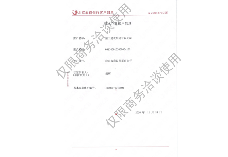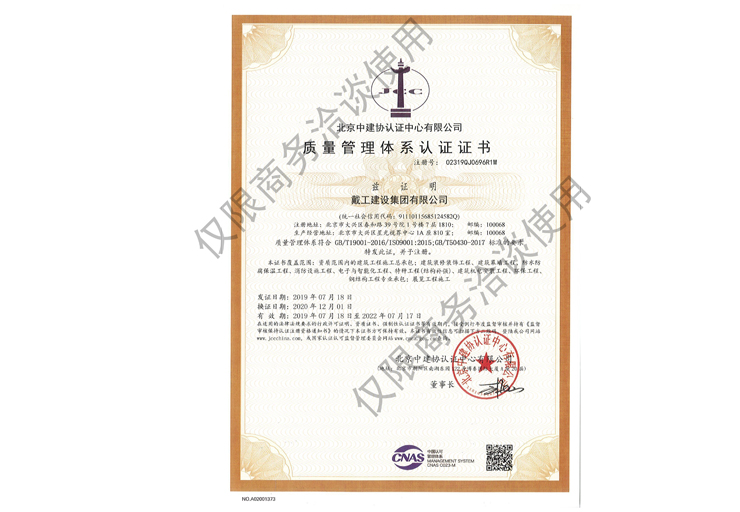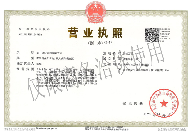 戴工建設集團有限公司,創(chuàng)建于2009年,注冊資本9888萬元人民幣。公司位于北京市大興區(qū)。具有建委頒發(fā)的建筑裝飾裝修專業(yè)壹級,防水保溫工程專業(yè)壹級,建筑幕墻專業(yè)貳級,消防設施專業(yè)貳級,電子與智能化專業(yè)貳級,特種工程(結(jié)構(gòu)補強)專業(yè)不分等級,建筑機電安裝專業(yè)貳級,環(huán)保工程專業(yè)貳級,鋼結(jié)構(gòu)專業(yè)貳級,建筑工程總承包貳級,建筑裝飾工程設計專項甲級,展覽陳列工程設計與施工壹級,展覽展示工程壹級...更多>>
